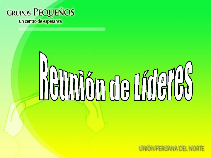 Cómo se involucra el pastor 1. Prepara la lección 2. Visita a un grupo sorpresivamente 3. Vincula su mensaje del sábado con el tema y la vida de los grupos pequeños. 4. Reúne a sus líderes semanalmente, les inyecta una visión fresca. 5. Presenta los nuevos grupos y se goza con ellos. 6. Entrena a doce jóvenes equipándolos para ser líderes.