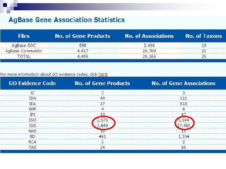Phase 1: “Breadth” n 7, 478 Chicken entries in Uni. Prot. KB ¨ GOA provides IEA mapping for Uni. Prot. KB entries Initial strategy for Ag. Base biocurators was to add GO to chicken gene products that had none. n Since 46% of the chicken proteins in NRPD were predicted, they would have no GO n ¨ IEA, ISS, ISO….