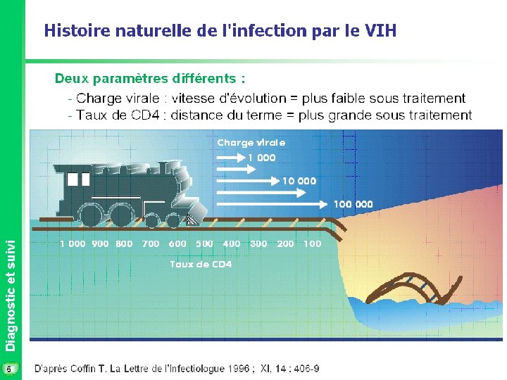 Suivi biologique de l’enfant VIH+ (1) l Évaluation du statut immunitaire – – – l Mesure du taux de lymphocytes CD 4 = test le plus prédictif et le plus utile Le pourcentage change peu en fonction de l’âge chez l’enfant séronégatif Le nombre absolu de CD 4 est + élevé que chez l’adulte car hyperlymphocytose physiologique Mesure de la réplication virale – – Mesure de l’ARN plasmatique par PCR: valeur prédictive indépendante du taux de CD 4 Charge virale > 5 log est significativement associée à un risque de morbidité à court terme