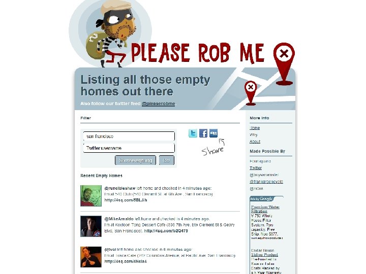 Privacy vs. security Privacy: what information goes where? Security: protection against unauthorized access • Security helps enforce privacy policies • Can be at odds with each other – e. g. , invasive screening to make us more “secure” against terrorism
