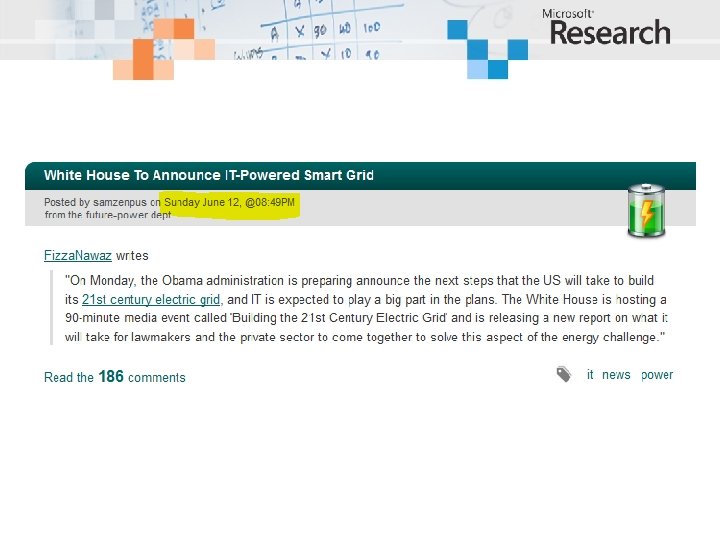 The new energy landscape (III) Smart metering: increase efficiency – – Better feedback to users through fine grained 15 -30 min readings Time of use billing (you pay for when you consume) Remote readings, monitoring, change of tariff, disconnection (competition) Integrate renewable micro-generation http: //energypriorities. com/entries/2006/02/pse_tou_amr_case. php