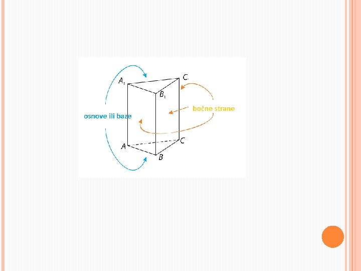 ŠTA JE PRIZMA? Telo ograničeno parom datih mnogouglova i pravougaonicima čiji jedan par stranica predstavlja par odgovarajućih stranica mnogouglova naziva se PRAVA PRIZMA. Podudarni i paralelni mnogouglovi nazivaju se OSNOVE ili BAZE prizme. Svaki pravougaonik koji obrazuje par odgovarajućih stranica mnogouglova sa projektujućim zracima naziva se BOČNA STRANA prizme.