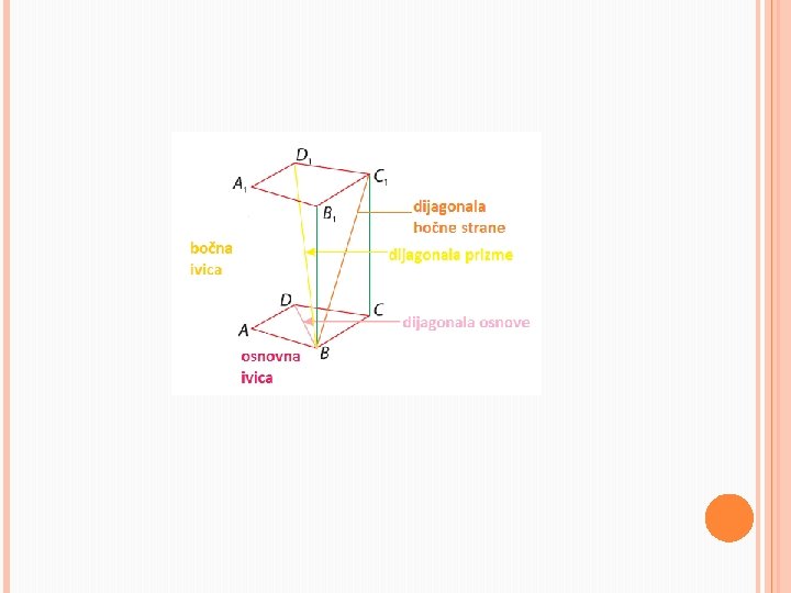 ŠTA JE PRIZMA? Stranice mnogouglova koji su osnove prizme nazivaju se OSNOVNE IVICE. Ostale ivice prizme su BOČNE IVICE. Dužina bočnih ivica naziva se VISINA PRIZME. DIJAGONALA PRIZME je svaka duž koja spaja dva temena prizme i ne pripada niti jednoj strani te prizme. Dijagonale bočnih strana i dijagonale osnova nisu dijagonale prizme.