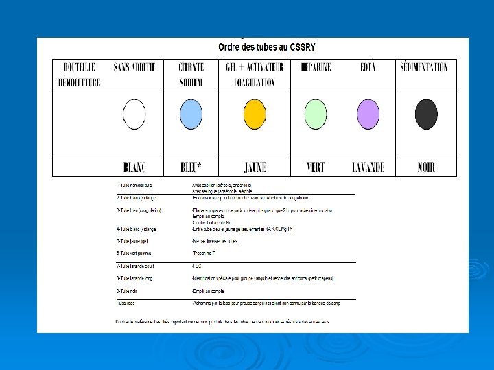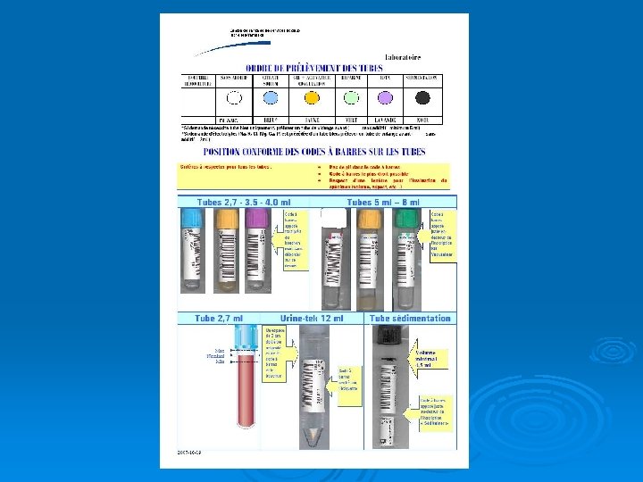 Précautions et particularités Ø Inverser délicatement les tubes ≈ 5 fois pour mélanger le sang aux produits contenus dans le tube. Ø Identifier adéquatement les tubes l l l nom et prénom du client numéro de dossier ou RAMQ date et heure du prélèvement si nécessaire