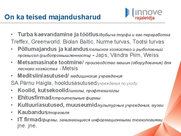 Pärnumaa majandus ja ettevõtted Экономика и предприятия города Пярну и Пярнуского уезда Terje Jürivete Pärnumaa Rajaleidja keskus www. rajaleidja. ee