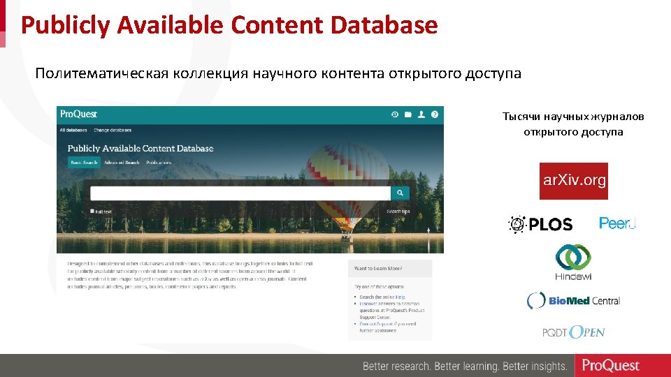 4. 5 Million Works from 1637 -Present • More than 2. 1 million full-text PDF works from 1743 present • More than 200, 000 works added each year • The official off-site repository for dissertations for the U. S. Library of Congress • Most top-ranked research universities – as defined by the Carnegie Foundation – publish with Pro. Quest • Includes works by authors from more than 3, 100 graduate schools and universities from more than 100 countries • Accessible by 4 million researchers from 3, 000 subscribing institutions around the world
