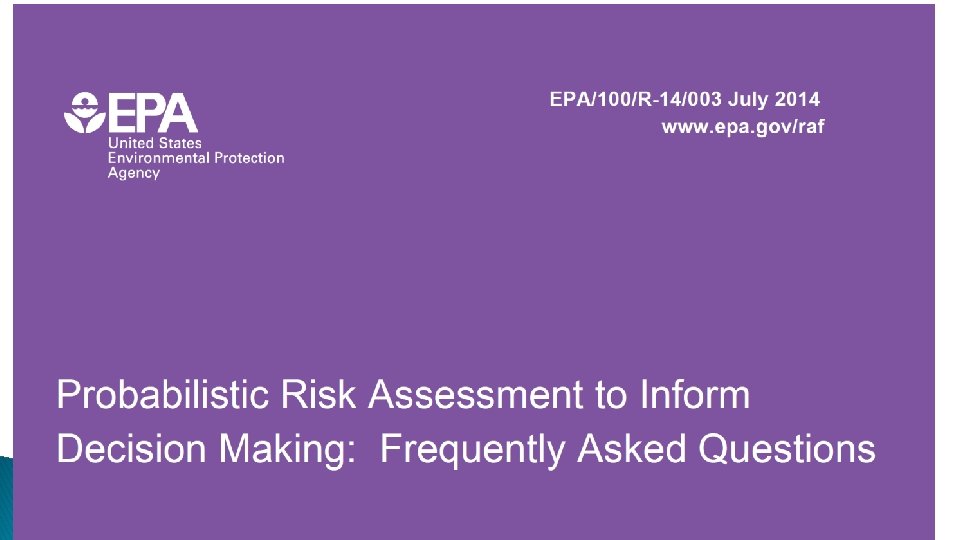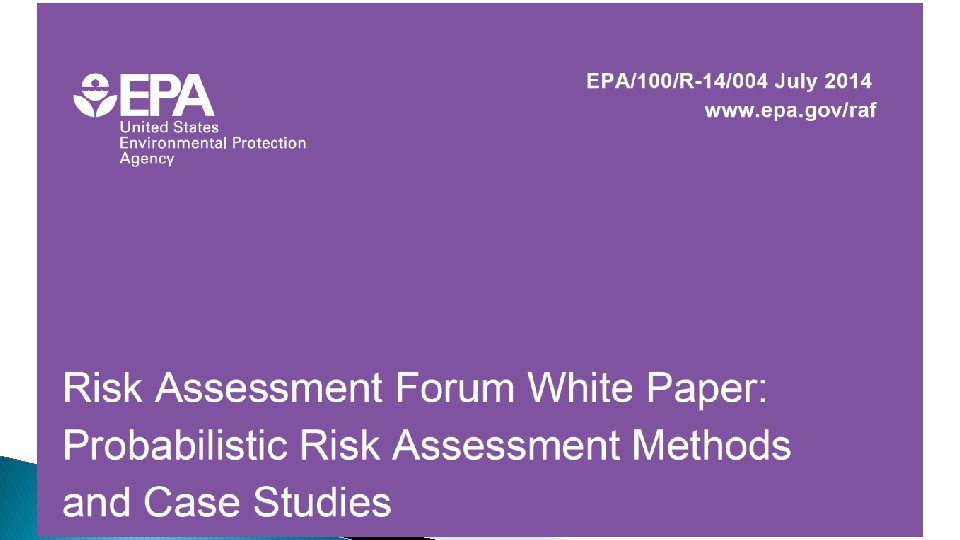 EPA Endorsement of PRA (2014) � “Probabilistic risk assessment (PRA) is one way to characterize the uncertainty associated with any risk assessment. As part of a decision analysis, the enhanced use of PRA and characterization of uncertainty would allow EPA decision‐makers opportunities to assess uncertainty pertaining to its effect on decisions and explore the defensibility of the available risk management options through a more robust and transparent process. Most often, risk managers want to know if better understanding of uncertainties might support a different decision alternative or provide further support for the selected decision. ”