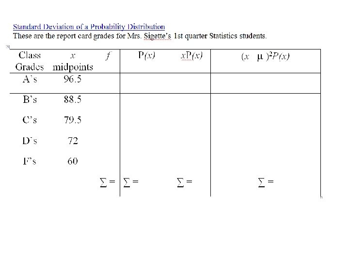 Example 2 – Solution We put the data in the first two columns of a computation table and then fill in the other entries (see Table 6 -5). Number of Times Buyers View Infomercial Before Making Purchase Table 6 -5