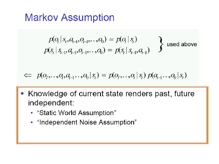 Markov Assumption Future is Independent of Past Given Current State “Assume Static World”