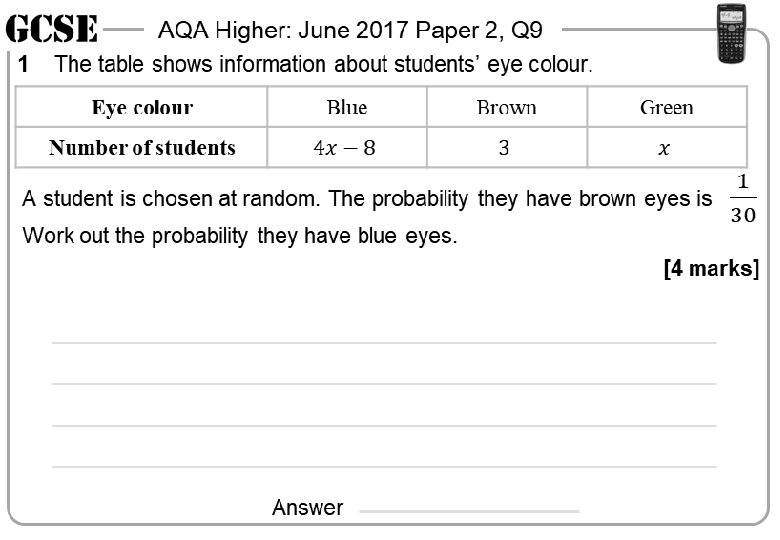 Probability With Equations Higher GCSE Questions AQA These