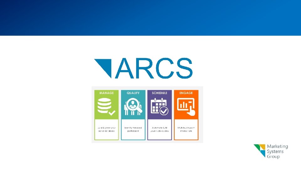 Show Me The Product… • Let’s prove how ARCS is • One of BEST panel management • Absolute BEST screening, recruiting and scheduling tool • One of the industry’s MOST expansive touch point / respondent contact systems • One of the BEST in research community management • One of the MOST secure