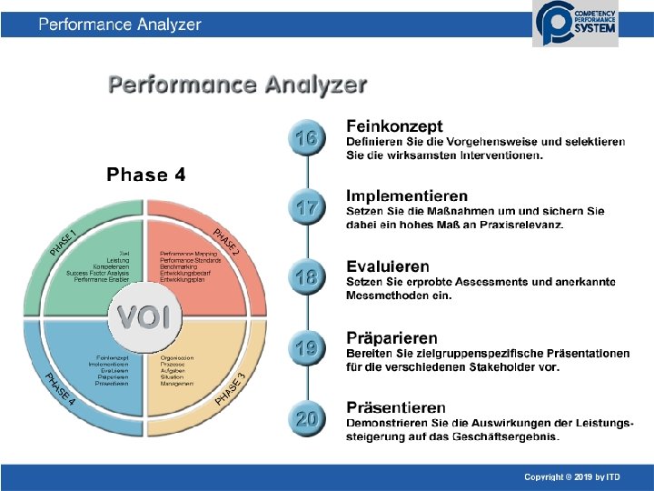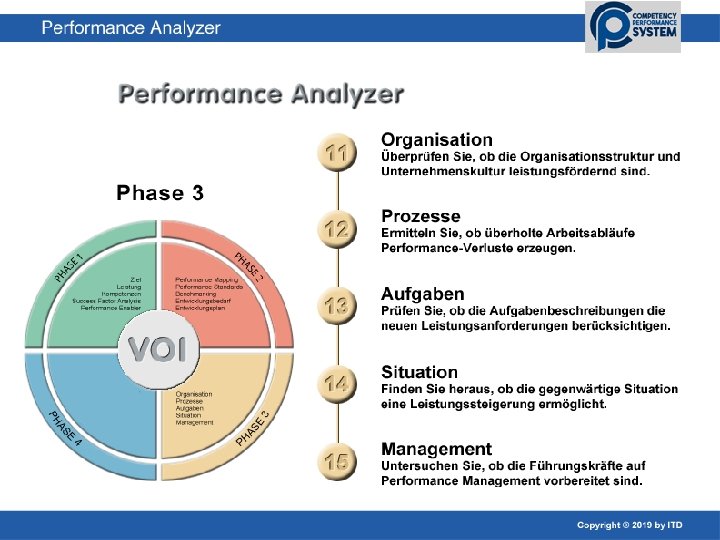 Problem identifizieren Signifikanz für Ziele klären Auswirkungen nach innen Auswirkungen nach außen Wichtigkeit/Dringlichkeit bestimmen Korrekturfelder ermitteln Zwischenkontrolle vornehmen Organisation Kommunikation Motivation Kompetenzen Support • Unternehmensziele • Philosophie/Mission • Marketing • Unternehmensstruktur • Unternehmenskultur • Public Relations • Internal Relations • Feedback System • Mitarbeiterinformation • Informationsfilter • Entlohnungssystem • Anerkennung g • Karriereförderung • Führungsverhalten • Eigenmotivation • Training • Entwicklung • On-the-Job Training • Transfersicherung • Action Learning • Collaboration Tools • EPSS • Mentor Pool • Lernkultur • Leistungsstandards