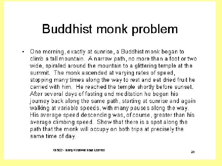 Gestalt view Some problems that initially seem hard suddenly become trivial when the representation is changed. You have an “Aha!” experience.