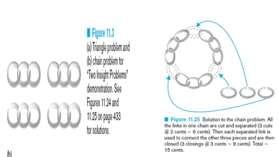 Here are some examples of insight problems. • 1 -Triangle Problem • The triangle shown in Figure 11. 3 a points to the top of the page. • Show you can move three of the circles to get the triangle to point to the bottom of the page.