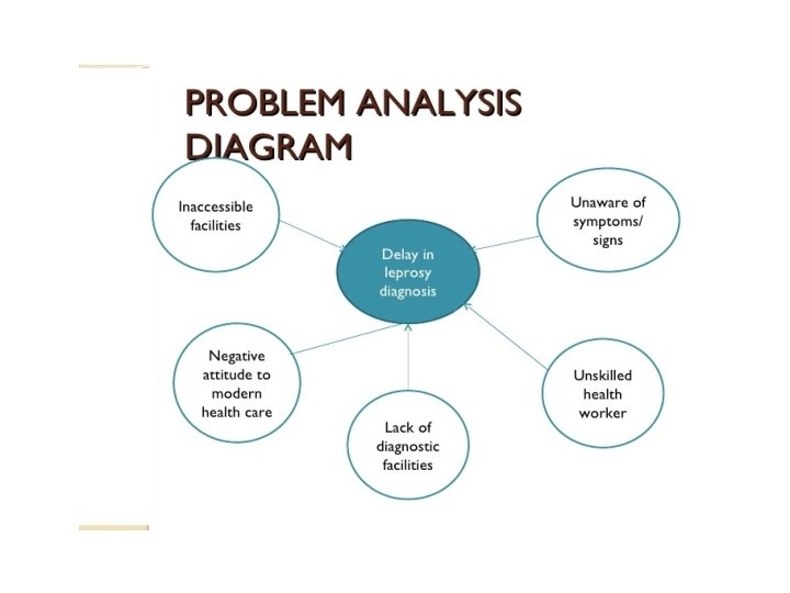 Steps in analyzing the Problem • Step 1: clarify view point of stakeholders. • Step 2: Specify and describe the core problem. • Step 3 : Analyze the problem. 3. 1 - write down core problem in the centre of flip chart / board • 3. 2 - Brain storming on possible causes or contributing factors. • Identify further contributing factors. • 3. 4 - Organize related factors in larger categories. Steps in analyzing the Problem