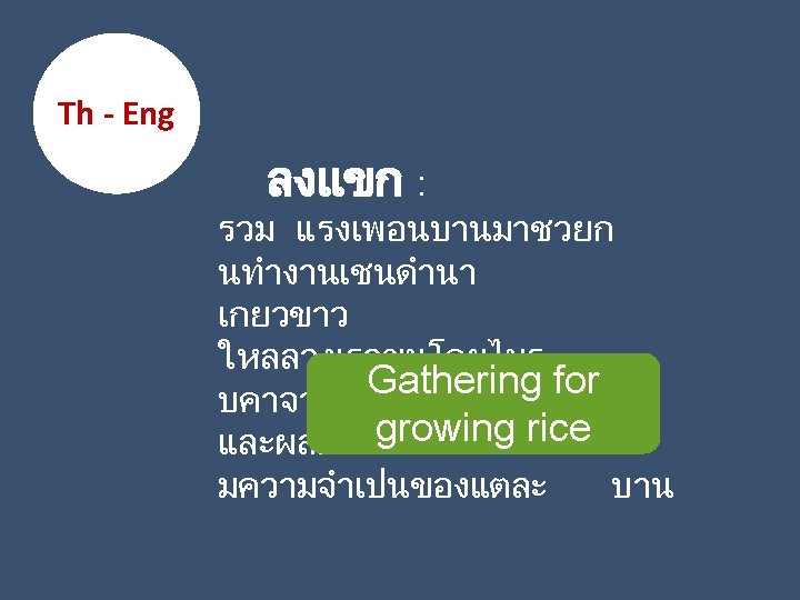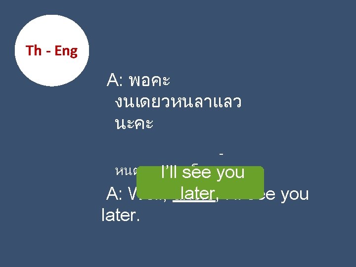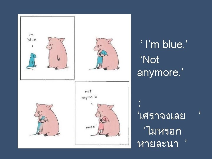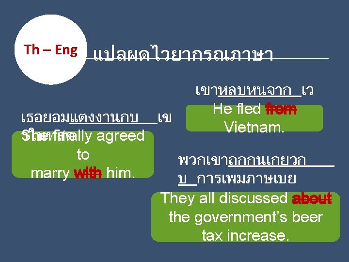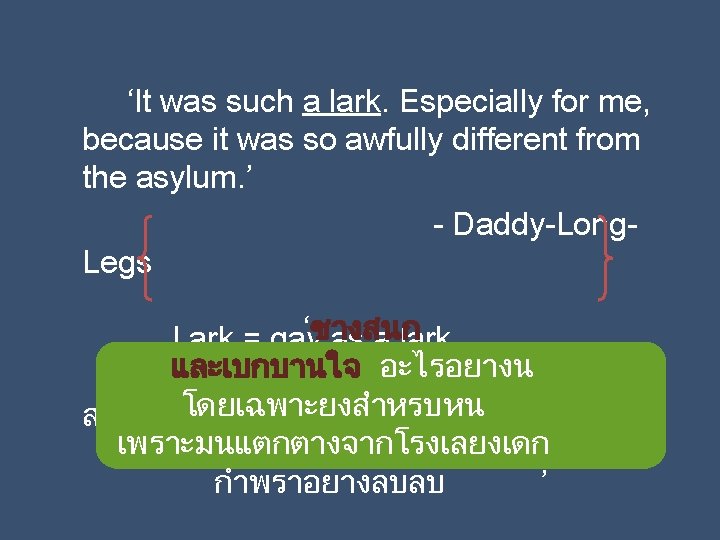 Th – Eng Metaphor/ similes ‘เราตองหาทางกำจด กาฝากขอ ‘We will have to ’think of งหมบานใหหมดไป ways to rid the village of those parasites. ’ ‘ความรกเปรยบเหม ‘Love, อนสายนำไหล like the flow of ’water, comes but never to stay. ’