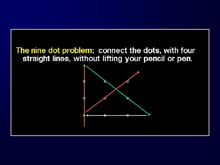 Obstacles to Problem-Solving • Mental sets, entrenchment, and fixation (viewing the problem from the “dominant paradigm) • Negative transfer • Memory load/interference – importance of incubation