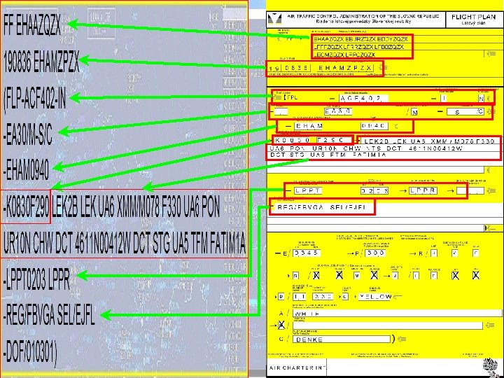 33 333333 (333 -333333 -33 -3333/3 -3/3 -333333333 333 333/3333 333 3333 N 33333 W 333 333 3333333 -3333 -333/ 33333 333/ 3333 -DOF/010301) DOF/100301 Toto pole je pre ďalšie určovanie nepodstatné. Je to vlastne ukončenie správy a dátum. Uvedené dekódovanie je veľmi stručné, a opiera sa len o potreby zoznámenia študentov s problematikou v rámci daného premetu. Pre úplne pochopenie je nutné preštudovať L 4444 dodatok 3, aj napriek tomu, že vzhľadom na množstvo uvádzaných údajov a polí v tomto predpise je vysvetlenie čiastočne nezrozumiteľné.