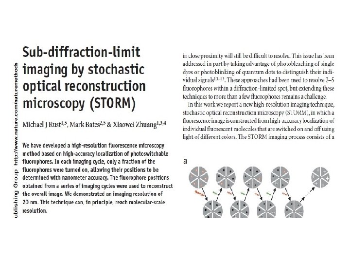 Stochastic Optical Reconstruction Microscopy 2 Bates, M. ; Blosser, T. R. ; Zhuang, X. Phys. Rev. Lett. 2005, 94, 108101 Rust, M. J. ; Bates, M. ; Zhuang, X. Nat. Methods 2006, 3, 793