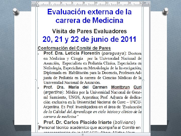 ¿Cómo se vivió la evaluación externa? O La conformación del equipo de pares evaluadores. O Preparación de la visita. O La llegada de los pares evaluadores a la institución. O La estadía de los pares evaluadores en la institución: tres días/dos días. O La llegada del informe preliminar de los pares evaluadores a la institución. O El envío de la respuesta de la carrera a