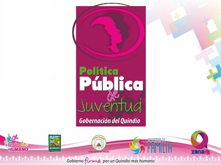 1. Antecedentes La Gobernación del Quindío desde su Plan de Desarrollo departamental 2012 – 2015 “Gobierno firme por un Quindío más humano”, ha planteado como una de sus metas la estructuración y formulación de políticas públicas poblacionales; entre ellas: Juventud y discapacidad, como un aporte al desarrollo social y armónico del territorio, que permita la equidad, la inclusión y la justicia social, desde los enfoques de derechos, el diferencial, y de equidad, orientados al cumplimiento, la garantía y el reconocimiento de los derechos ciudadanos; dentro del marco jurídico y legal del orden nacional e internacional que fortalezca la democracia, la paz y la seguridad de los territorios.