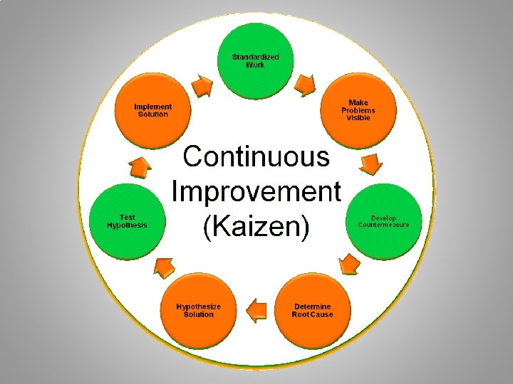 QUE ES? Kaizen reúne y utiliza todas las técnicas descritas anteriormente bajo el paraguas. Es una actividad de sentido común y de bajo costo, orientada a la administración del proceso en forma continua. ndard a t s o Nuev Kaizen d andar t s o v Nue Kaizen Innovación • Lo vige nte Tiempo