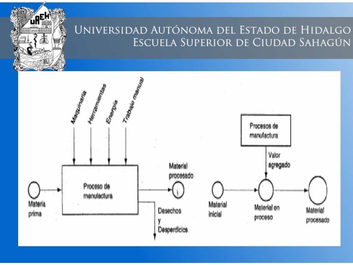 1. 1. 1 Definiciones Trataremos algunos temas generales sobre manufactura. ¿Qué es manufactura? ¿Cómo se organiza en la industria? ¿Cuáles son los materiales, los procesos y los sistemas con que se realiza la producción? ¿Qué es manufactura? La palabra manufactura se deriva de las palabras latinas: manus (manos) y factus (hacer); hacer con las manos manufacturing --- describe el método manual Definición de manufactura. - Como campo de estudio en el contexto moderno, puede definirse de dos maneras: Tecnológica y Económica. Tecnológicamente es la aplicación de procesos químicos y físicos que alteran la geometría, las propiedades o el aspecto de un determinado material para elaborar partes o productos terminados.