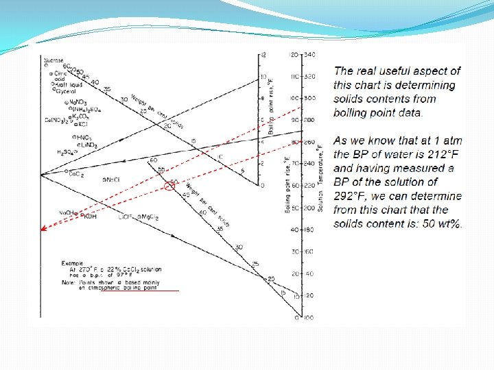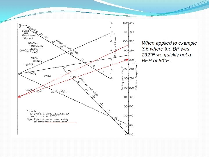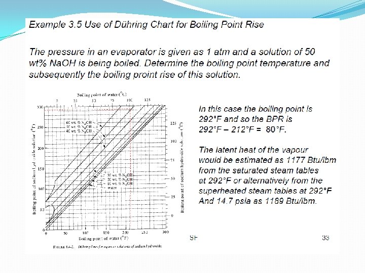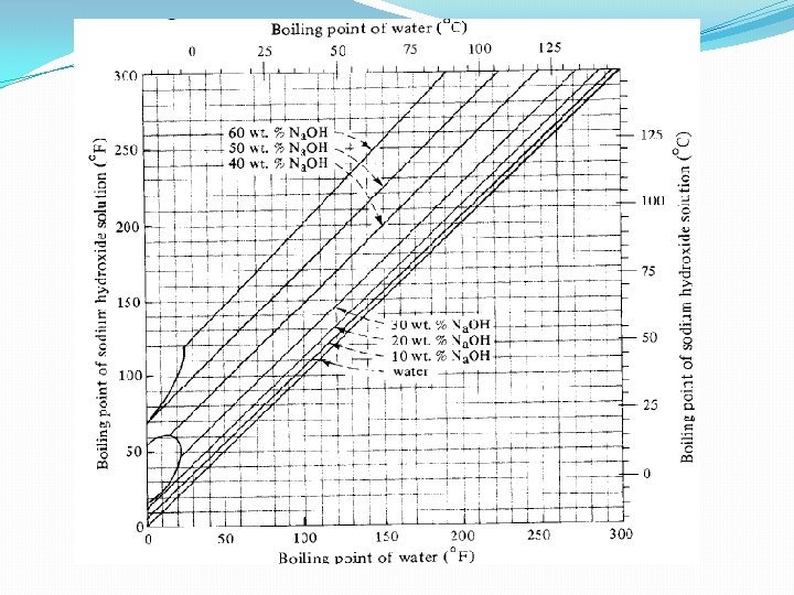 • However, a useful empirical law known as Dühring’s rule can be applied. • According to this rule, a straight line is obtained if the boiling point of a solution in 0 C or 0 F is plotted against the boiling point of pure water at the same pressure for a given concentration at different pressure. A different straight line is obtained for each given concentration.
