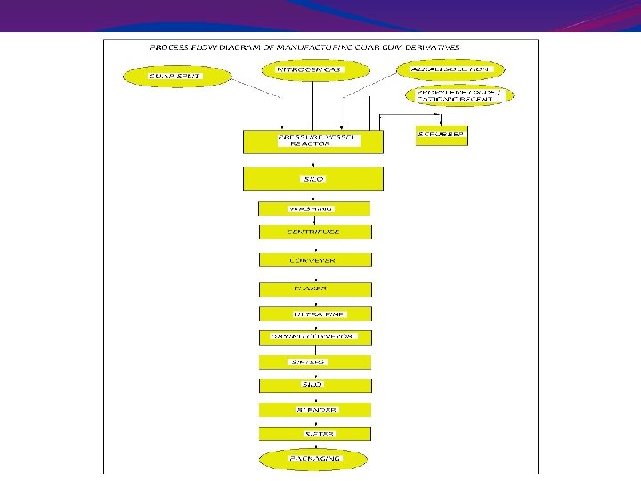 PROCESS FLOW DIAGRAM GUAR PLANT GUAR PODS GUAR SEED GUAR HULL (MEAL) FOOD GRADE ENDOSPERM (SPLIT) GUAR KERNEL (KORMA) INDUSTRIAL GRADE