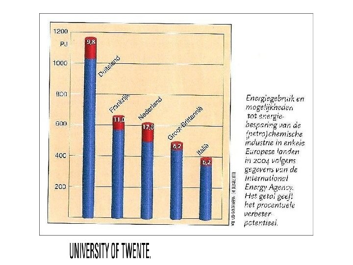 Alleen de chemie al: • • • 10% van de industriële werkgelegenheid 15% van de industriële produktie 17% van de totale uitvoer Overschot balans chemie: 24 miljard Euro (2011) Kapitaal chemische installaties: ca. 40 miljard Euro (ca. 1/5 van totaal kapitaal industriële installaties) • 25% van niet-overheids investeringen (1. 6 miljard) • 25% van de uitgaven voor R&D (ca. 1. 2 miljard euro) VNCI 1995, 2005, 2012