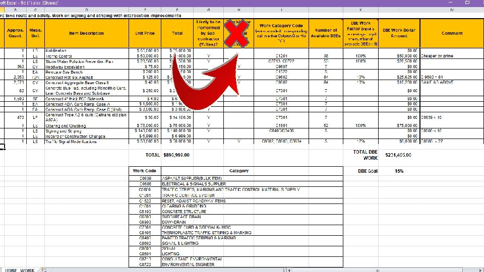 HOW to set a DBE goal – Seven Steps 1. Identify work 2. Determine work category codes 3. Search for available DBE firms (CUCP) 4. Apply DBE factors to sub work 5. Calculate a soft goal 6. Apply 60% factor 7. Round to nearest whole %