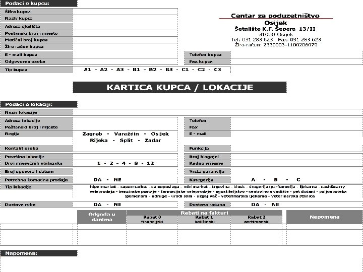 Poznavanje kupaca – osobni profil • • • utjecaj na odlučivanje (decision maker, opinion maker) osjetljivost na uvjete (visoka, srednja, niska) poštivanje dogovora (da/ne) razlog zašto (ne)radi s nama prijatelji u struci statusni simboli hobi prehrambene navike pušač