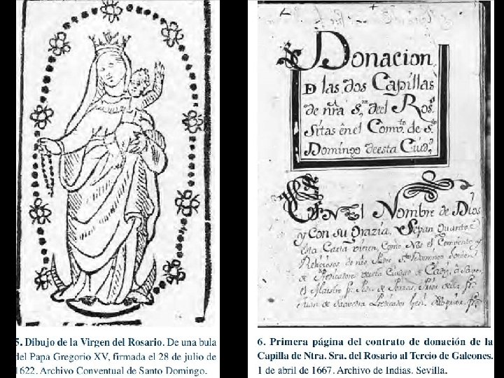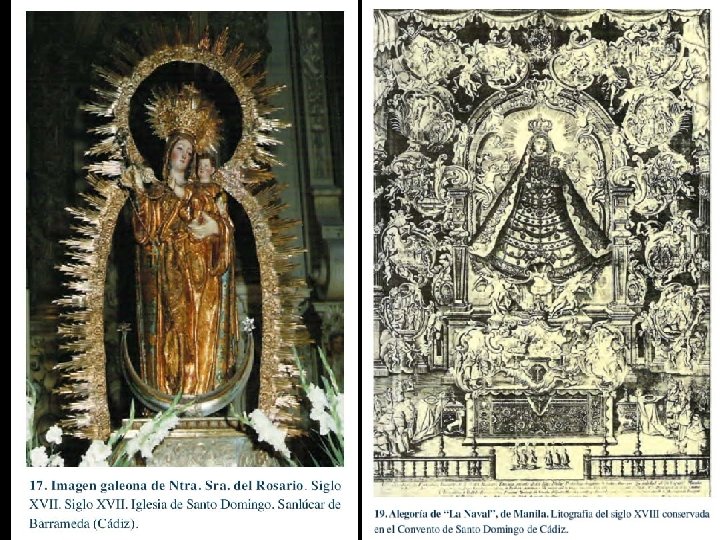 En el Convento de Santo Domingo, en Cádiz, siempre han existido dos imágenes principales de la Virgen del Rosario. Una imagen, de tamaño natural, vestida, que ocupa el Camarín central del retablo en la Iglesia del Convento y que se llama “La Patrona”. Tiene esta imagen su pequeña historia. Pero, además, existe otra, ésta de talla de madera, sin vestidos de tela, de unos 60 cms. de altura, que se conoce con el sobrenombre de “La Galeona” y que también tiene su pequeña historia.