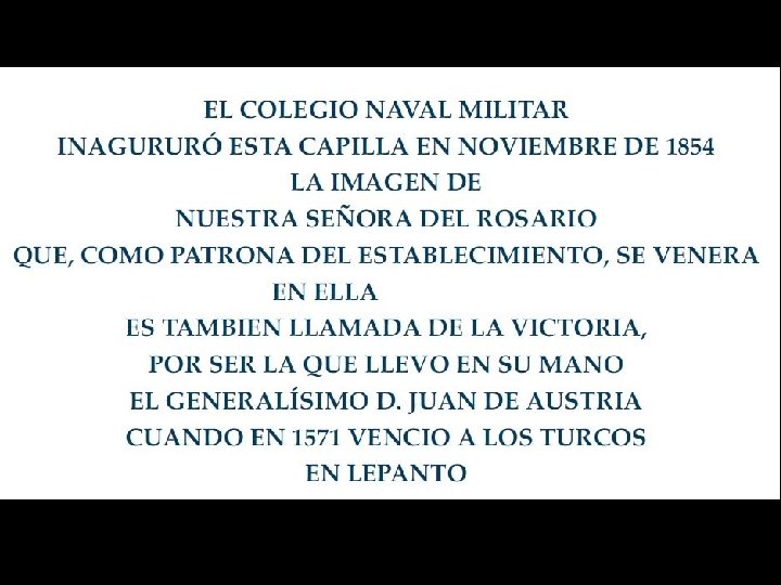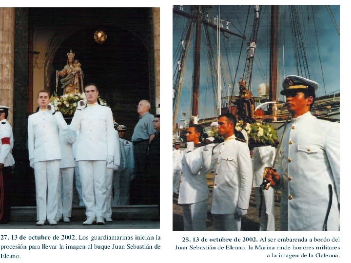 El buque escuela Juan Sebastián Elcano, al iniciar el 10 de enero de 1986 su LVII Crucero de instrucción , llevando por primera vez en su capilla la imagen de La Galeona.