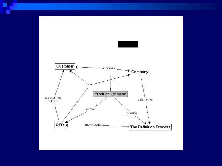 Product Definition Process Where are we in the market now? n Where do we want to go? n How big is the potential market? n What does the customer really want? n How feasible is technical development? n How do we get where we want to go? n What are the chances of success? n