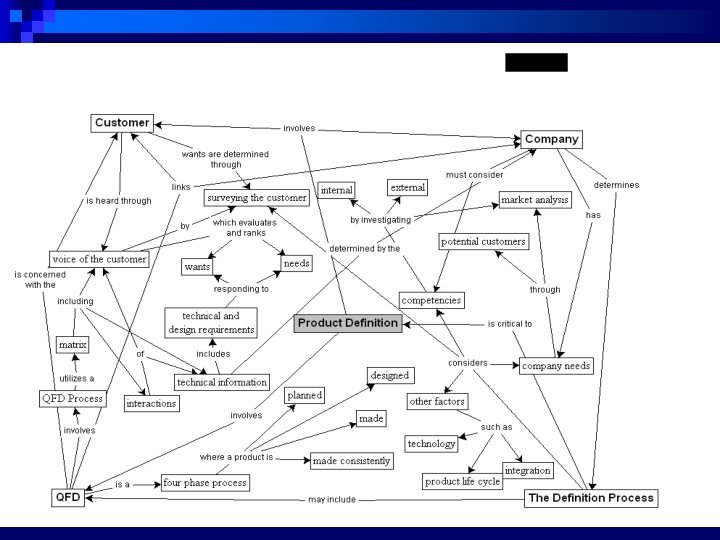 QFD Process Then itwith…. . links……… Begins The wants of the customer with Companies and assists with the planning process -Matrix format is essential to this process