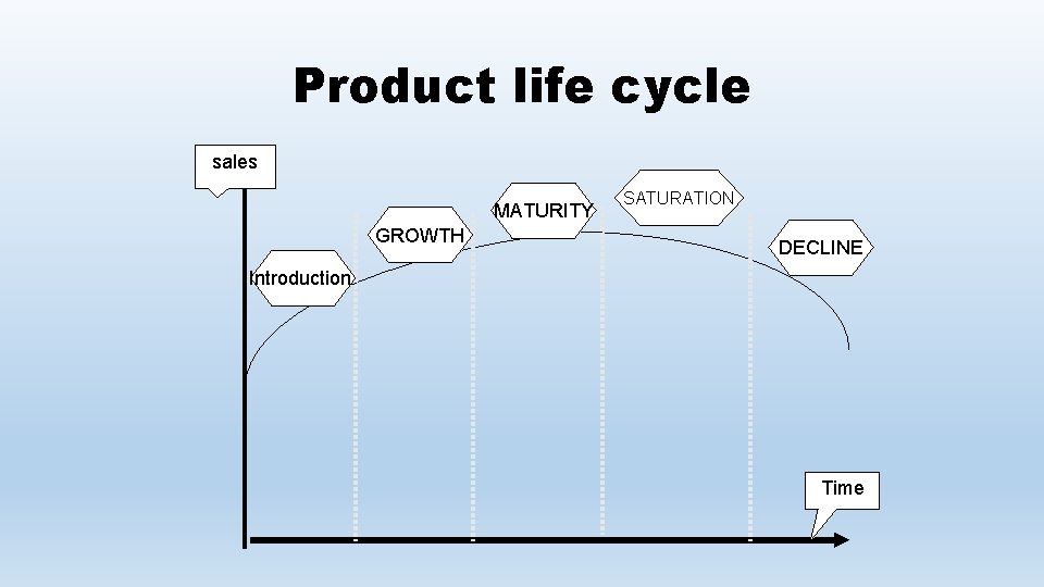 Product life cycle sales MATURITY GROWTH SATURATION DECLINE Introduction Time