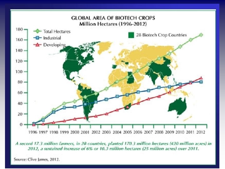 Global cultivation areas, in millions of hectares http: //www. gmo-compass. org/eng/agri_biotechnology/gmo_planting/257. global_gm_planting_2013. html