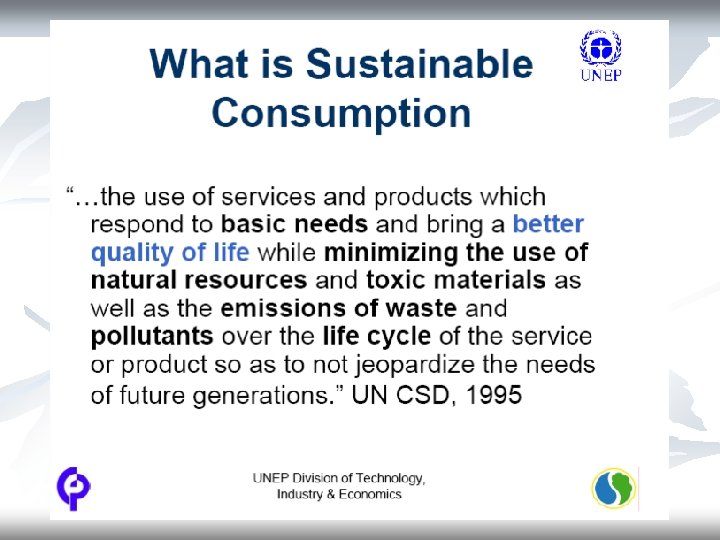 CP is mainly for production. . However, consumption is also very important in terms of sustainability and resource conservation. . .