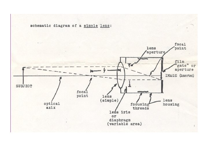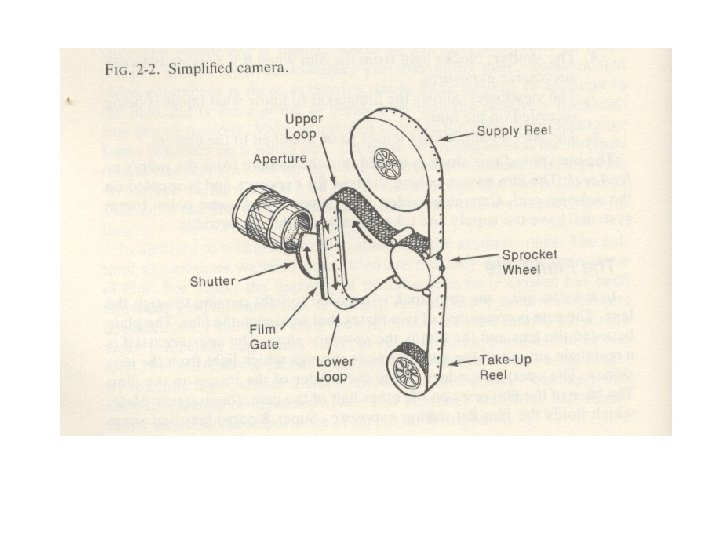 Production Phase • How does the camera work? – As you can see, the film makes its way from the spool into the loop and through the gate. The aperture in the gate is a small square hole that allows light to pass from the lens onto the focal plane of the film. This process is represented in the diagram on the left of the next slide.