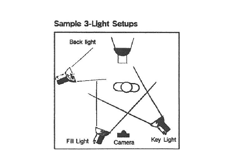 Production Phase • Lighting – Location • Indoor lighting – Indoor lighting is generally achieved through the use of specialized lamps with varying characteristics of directionality (focus), throw (distance), and intensity (brightness). There are three lights in a basic lighting setup (also see the next slide): » Key Light (provides the primary source of illumination) » Fill Light (illuminates the shadows left by the key light) » Back Light (separates the foreground from the background)