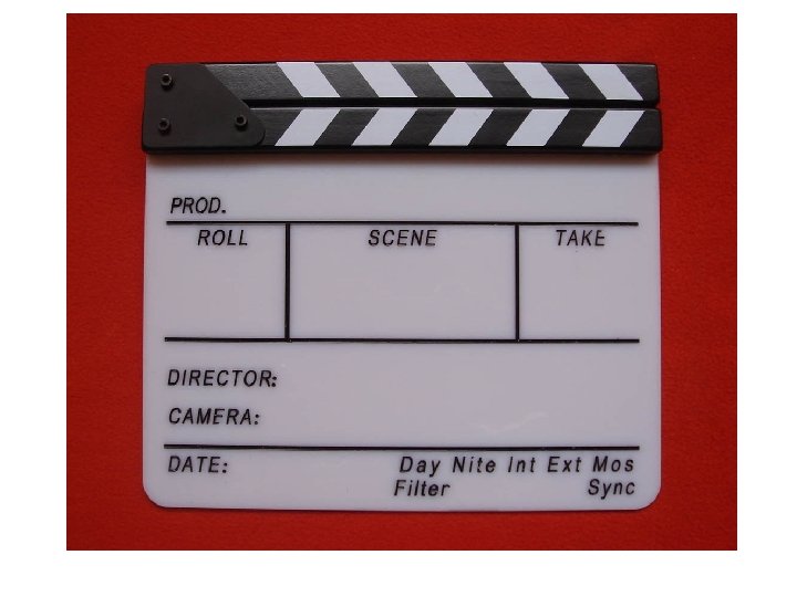 Production Phase • Sound Recording – Dialog • There a series of steps that are taken on a film set in order to ensure the proper coordination of picture and sound track: – 1: The director says “quiet on the set” and “roll sound. ” – 2: The sound mixer says “sound speed” when the tape is running at the correct speed for recording synchronized sound. – 3: The director calls out “roll camera. ” – 4: The camera operator says “speed” when the film is running at sound speed (24 frames per second). – 5: The director calls out “slate. ” – 6: The clap slate indicating roll, scene, and take is placed before the camera and read out loud (e. g. “Roll 1, Scene 1, Take 1”). – 7: The director says “mark. ” – 8: The slate is clapped and removed. – 9: Finally, the director calls “action” to cue the actors.