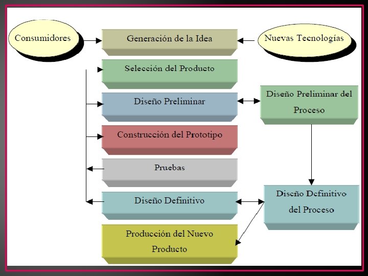 Proceso de Desarrollo de Nuevos Productos Se lleva a cabo en el ámbito de los negocios e ingeniería y consiste en el proceso completo de crear y llevar un nuevo producto al mercado. Existen dos aspectos paralelos que se involucran en este proceso: uno implica ingeniería de producto; el otro, análisis de mercado