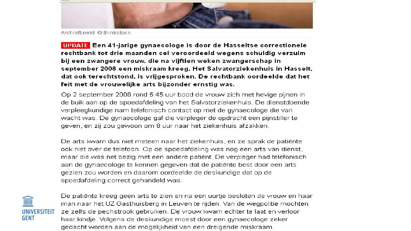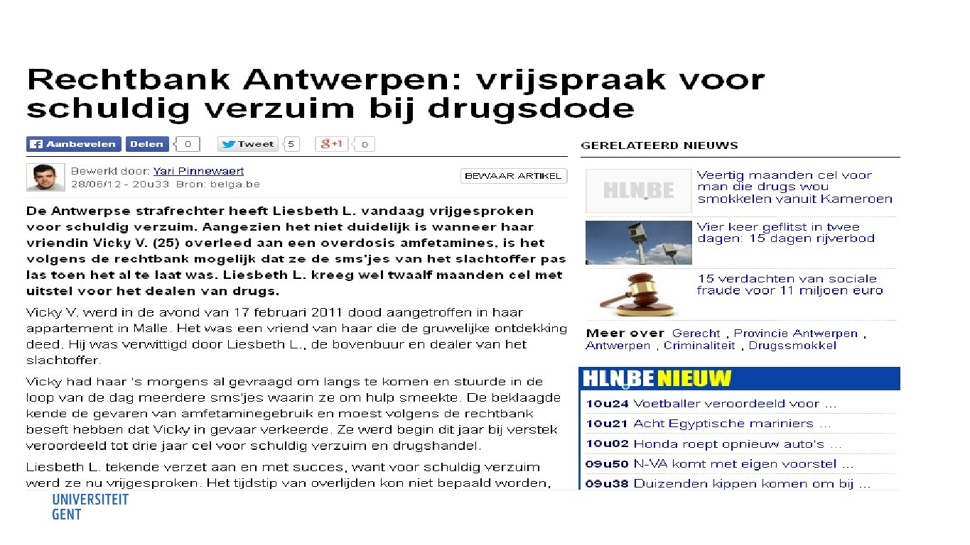 SCHULDIG VERZUIM Algemeen geldend principe: http: //www. hln. be/hln/nl/957/Binnenland/article/detail/1462020/2012/06/ 28/Rechtbank-Antwerpen-vrijspraak-voor-schuldig-verzuim-bijdrugsdode. dhtml Cf. arrest : “Arts veroordeeld wegens schuldig verzuim” http: //www. hln. be/hln/nl/957/Binnenland/article/detail/1708167/2013/09/ 20/Drie-maanden-cel-voor-gynaecologe-na-schuldig-verzuim. dhtml Wanneer iemand in groot gevaar verkeert, is ook geheimhouder verplicht hulp te bieden (art. 422) ‒ Hoger belang (leven) ‒ Bv. informeren van partner over HIV-status
