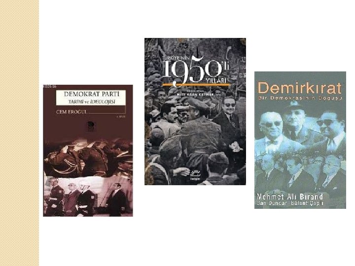 1950’li yıllarda Türkiye • Dünyaya açılma devri, ABD hegemonyasının etkisine girilen yıllar, … • Tek parti sultasının ardından Demokrat Parti devri. . . Adnan Menderes, Celal Bayar, İsmet İnönü, Osman Bölükbaşı, Fevzi Lütfü Karaosmanoğlu, Hikmet Kıvılcımlı ve diğerleri. . . • Soğuk Savaş, anti-komünizm, DP’yle birlikte bir yeni otoriterlik tecrübesi, özgürleşme arayışları. . . • Siyasal mücadeleler, dış politika, Kore Savaşı, 6/7 Eylül olayları, vatan cephesi, tahkikat komisyonu, dokuz subay olayı, Doğu Sorunu… • Günlük hayat, popüler kültür, magazin, sinema, edebiyat…