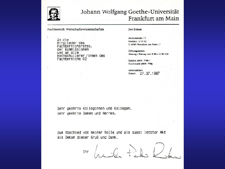 Prof. Dr. U. P. Ritter Professur für Hochschuldidaktik der Wirtschaftswissenschaften J. W. Goethe-Universität, Frankfurt am Main Herzlich Willkommen Zu der Abschiedsvorlesung Aus Fehlern Lernen: 25 Jahre Hochschuldidaktik der Wirtschaftswissenschaften an der Goethe-Universität