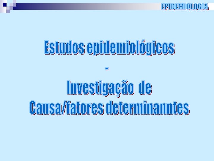 INVESTIGAÇÃO DE FATORES DETERMINANTES - MÉTODO EXPERIMENTAL - MÉTODOS OBSERVACIONAIS - TRANSVERSAIS ou SECCIONAIS - INQUÉRITOS EPIDEMIOLÓGICOS - LONGITUDINAIS - ESTUDOS DE COORTES - ESTUDOS DE CASOS-CONTROLE