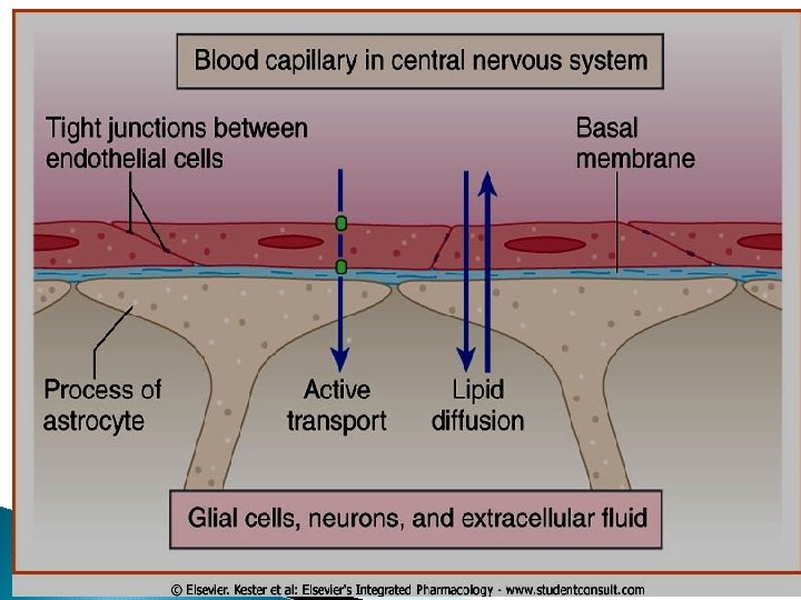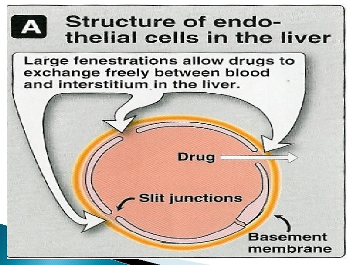 Capillary permeability Endothelial cells of capillaries in tissues other than brain have wide slit junctions allowing easy movement & distribution. Brain has tight junction Blood Brain Barrier (BBB).