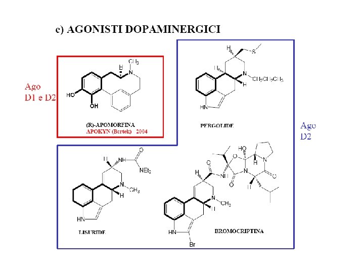 NB: nel dicembre 2007 la pergolide (NOPAR-Lilly) è stata ritirata dal commercio. La bromocriptina non viene più consigliata.