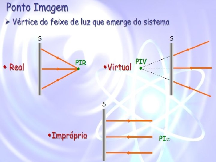 TEORIA DE FORMAÇÃO DE IMAGENS • Classificações de pontos objeto e pontos imagem.